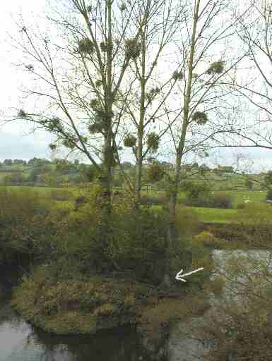 | Observez la tache claire à la base de l'arbre. (Non pas la flèche !)